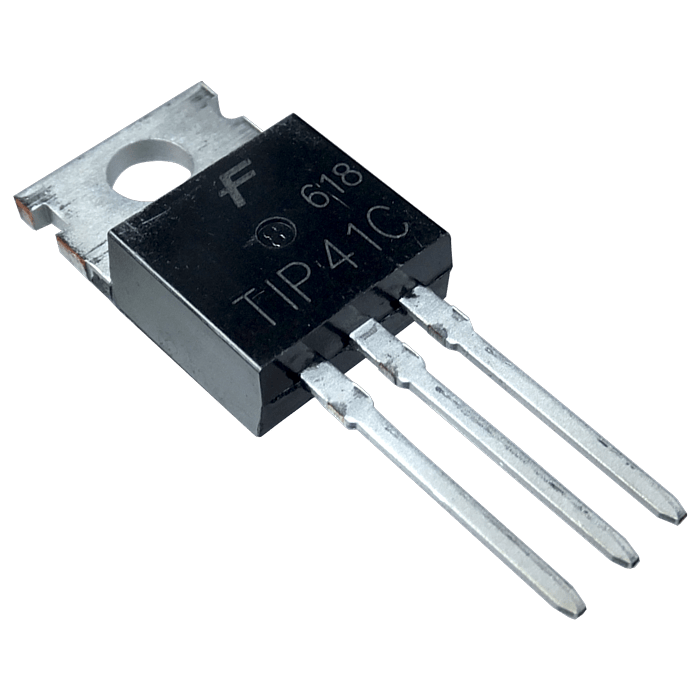 ترانزیستور TIP41C که برای کنترل جریان و تقویت سیگنالها در مدارهای قدرتی استفاده میشود. این ترانزیستور به صورت یک قطعه الکترونیکی فعال که بر اساس اصول نیمه هادی عمل میکند، ساخته شده است.