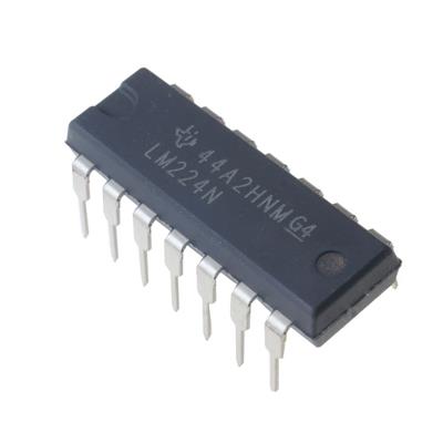 این تراشه آمپلیفایر LM224 یک آیسی آمپلیفایر چهار کاناله با ولتاژ کم تغذیه و پایههای DIP 14 پین است. این آیسی آمپلیفایر محصول شرکت Texas Instruments میباشد. ولتاژ کاری این آیسی آمپلیفایر از ۳ ولت تا 30 ولت میباشد و دارای ورودی جریان و خروجی مستقیم (DC) نیز هستند.