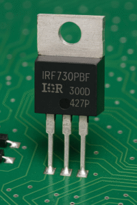 ترانزیستور IRF730PBF یک ماسفت (MOSFET) قدرت از نوع کانال N است که برای کاربردهایی با ولتاژ بالا و جریان متوسط طراحی شده است. این قطعه با ولتاژ شکست تا 400 ولت و جریان خروجی حدود 5.5 آمپر، انتخابی مناسب برای مدارهای سوئیچینگ، منابع تغذیه و اینورترهاست. ساختار داخلی آن بهگونهای طراحی شده که بتواند با سرعت بالا عمل کلیدزنی را انجام دهد و در عین حال تلفات توان را کاهش دهد.