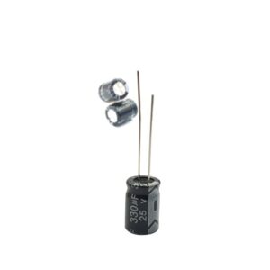 خازن الکترولیت 330uF-25V نوعی خازن است که از یک الکترولیت برای رسیدن به یک ظرفیت بزرگتر نسبت به سایر انواع خازن استفاده می کند. الکترولیت یک مایع یا ژل حاوی دارای غلظت بالا یون است.