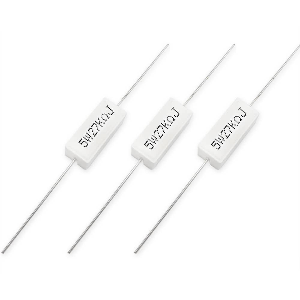 مقاومت آجری ۵وات 27 کیلو اهم مصرف زیادی در الکترونیک دارد جنس مقاومت های آجری معمولا از جنس کرم و نیکل است و معمولا دارای یه روکش گچی یا آجری می باشند .