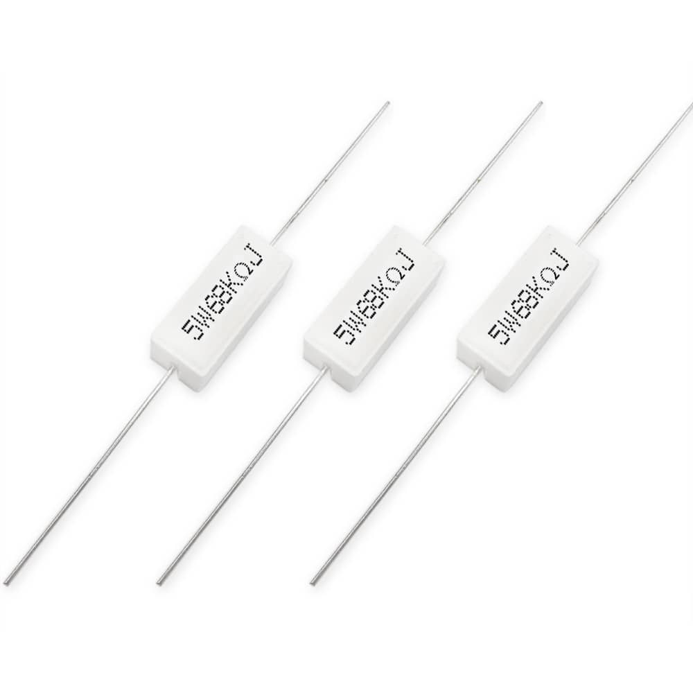 seramic resistor 5w 68k مصرف زیادی در الکترونیک دارد جنس مقاومت های آجری معمولا از جنس کرم و نیکل است و معمولا دارای یه روکش گچی یا آجری می باشند.